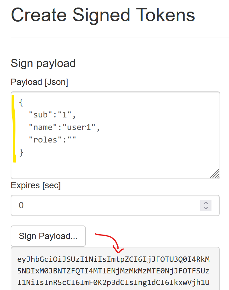 Hier kann ein Payload (Dictionary) im JSON-Format angegeben werden, aus dem ein Token erzeugt wird: