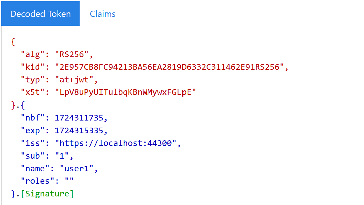 Der erzeugte Token enthält dann die folgenden Informationen: